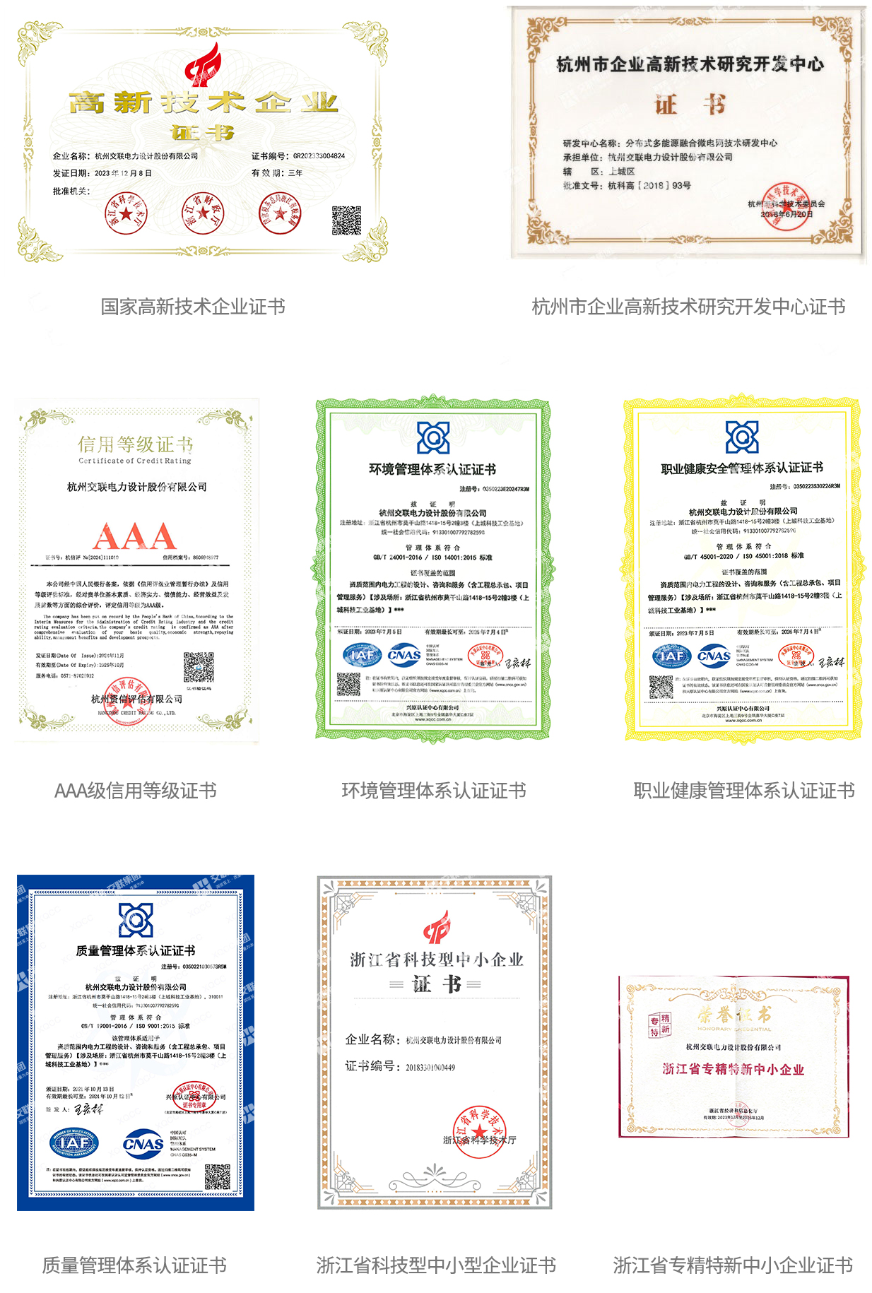 杭州交联电力设计股份有限公司创立于2005年,是高新电力技术方案解决商,是国家高新技术企业,并已在新三板挂牌。公司具有电力行业(送电、变电工程)设计甲级资质证书、电力行业(新能源发电)专业乙级资质证书、工程勘察专业类(工程测量)乙级资质证书、工程咨询火电专业乙级资质证书、浙江省能源评估资质证书,并获得质量管理体系认证证书、环境管理体系认证证书、职业健康安全管理体系认证证书等,建立了与公司业务发展范围相符的管理体系标准。